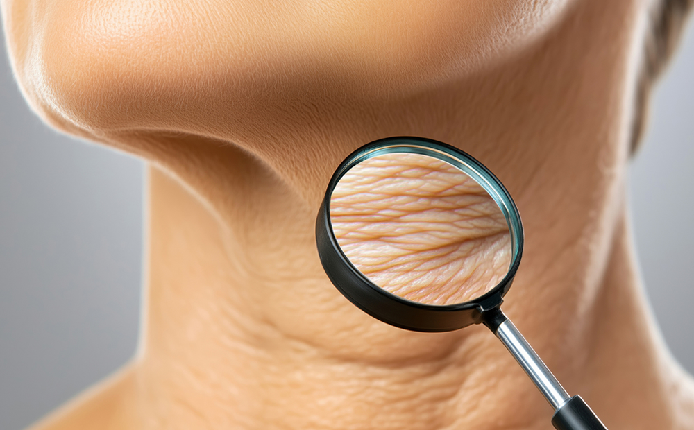 しみや首の老化は30代からゆるやかに始まり、目の下の溝は20代から現れることも珍しくありません。